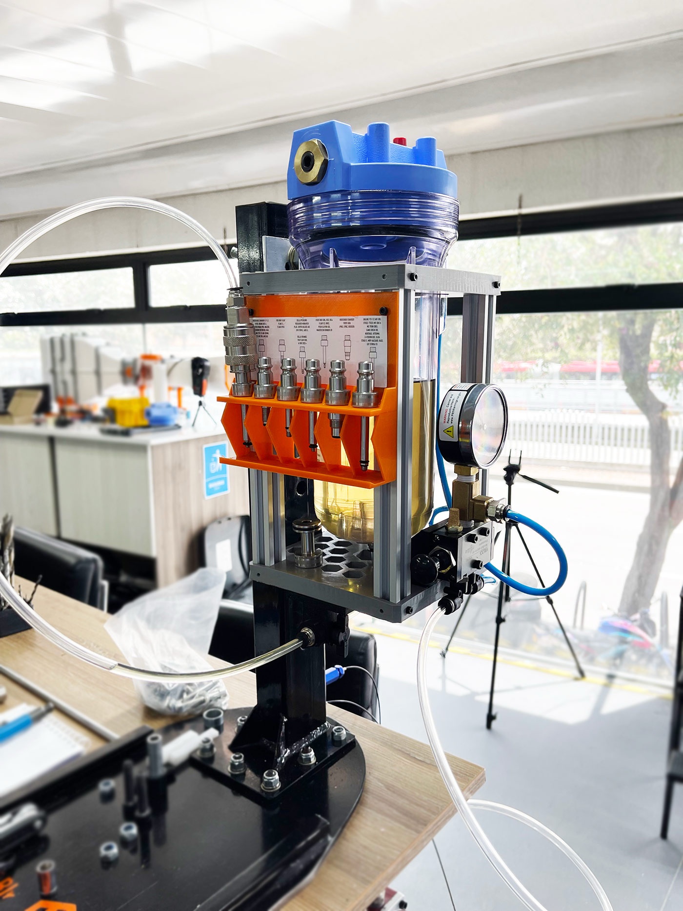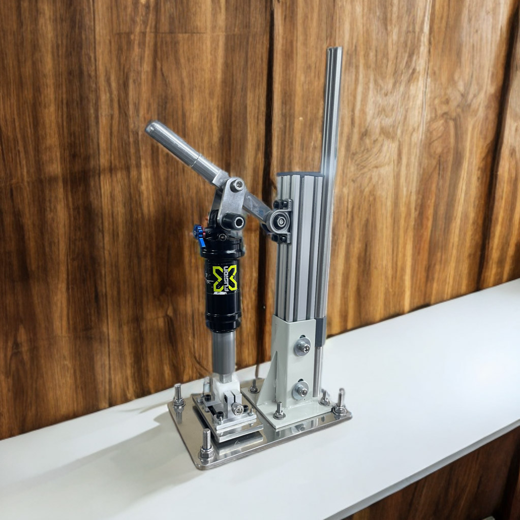 Indispensable para probar todos los MonoShocks de bicicletas. Nuestra bancada viene con los adaptadores para todas las interfaces de Specilized, Trek y es adaptable a todos los tamaños comerciales de Shocks. Construida en acero inoxidable y hierro cromado.