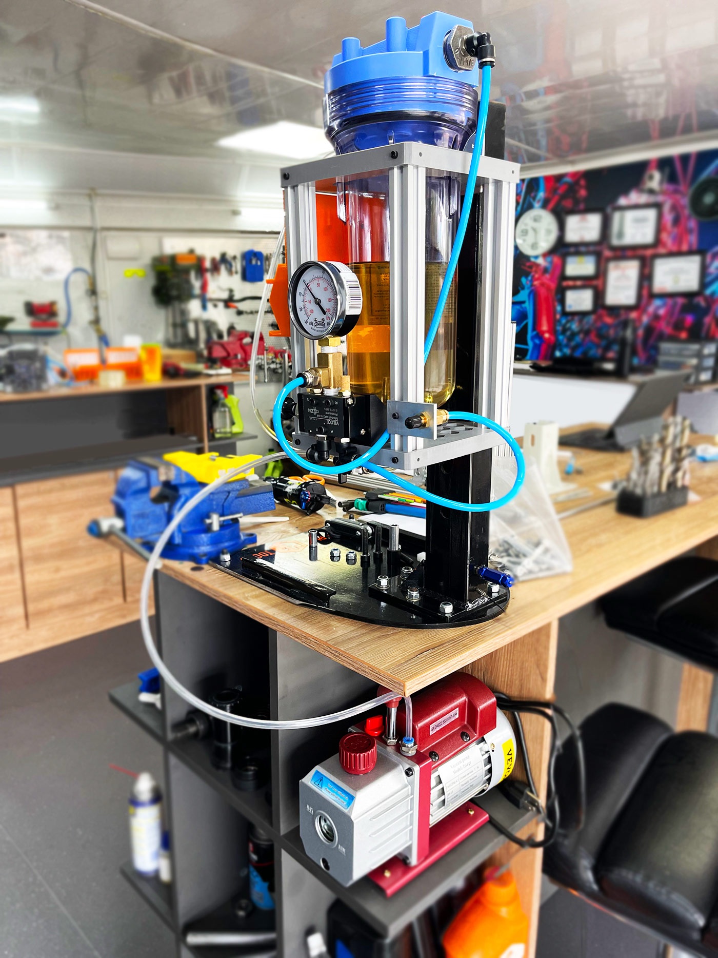 Haz que tus clientes y sus suspensiones estén a la altura de los laboratorios profesionales. Los nuevos dampers (RockShox Charger, Fox Grip, Ohlins, CaneCreek) de suspensiones avanzadas requieren una carga muy precisa en la purga de su aceite. El aire es el enemigo número uno.