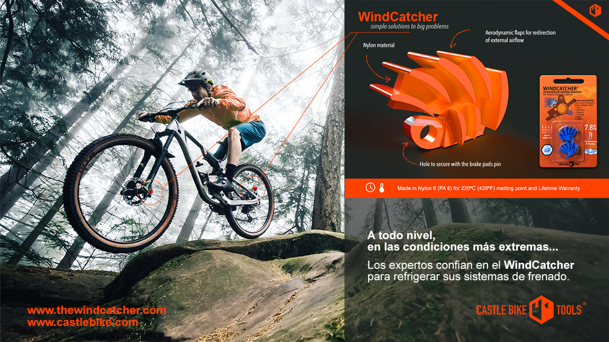 El WindCatcher es un dispositivo revolucionario diseñado para refrigerar los sistemas de frenos hidráulicos. Este sistema de refrigeración por inducción, compatible con todas las marcas y reutilizable hasta por 20 cambios de pastillas, no solo enfría las pastillas de freno, sino también los discos y los pistones.